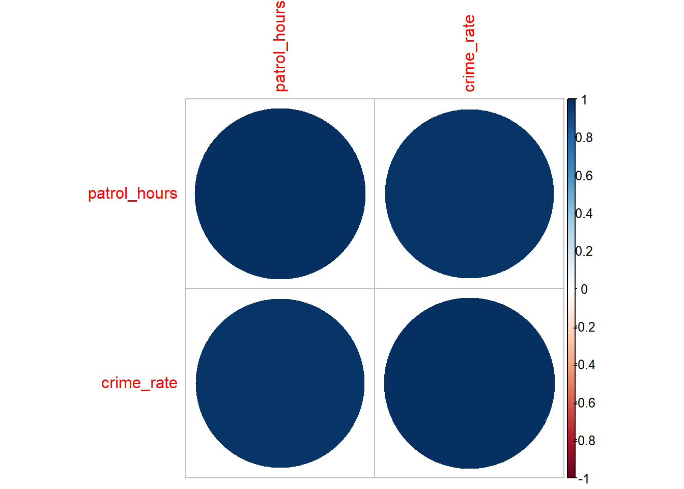 cor(data_beat$patrol_hours, data_beat$crime_rate, method = "spearman")## [1] 0.9757576